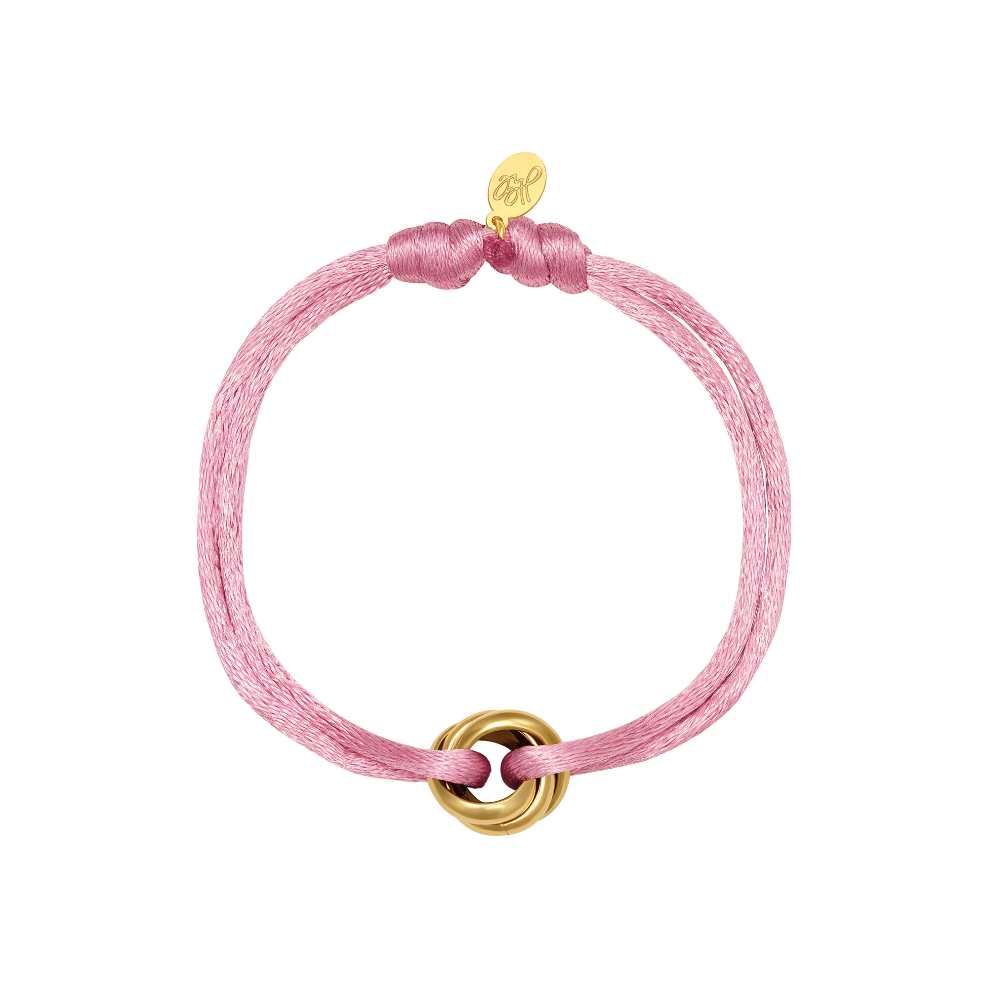 Hoe leuk is dit roze armbandje van satijnkoord. De armband heeft in het midden 3 goudkleurige ringen en is in maat verstelbaar. Lees meer